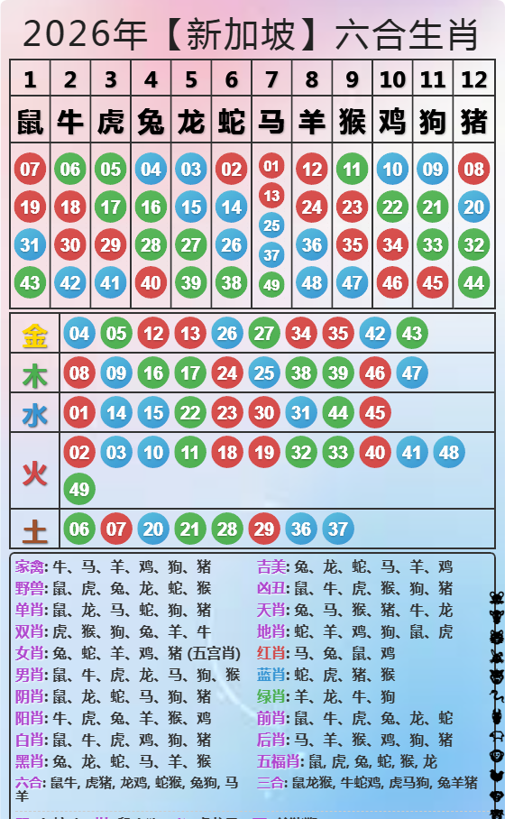 | 蓝肖-猴蛇虎猪 | 绿肖-牛羊龙狗 | 红肖-马兔鸡鼠 |